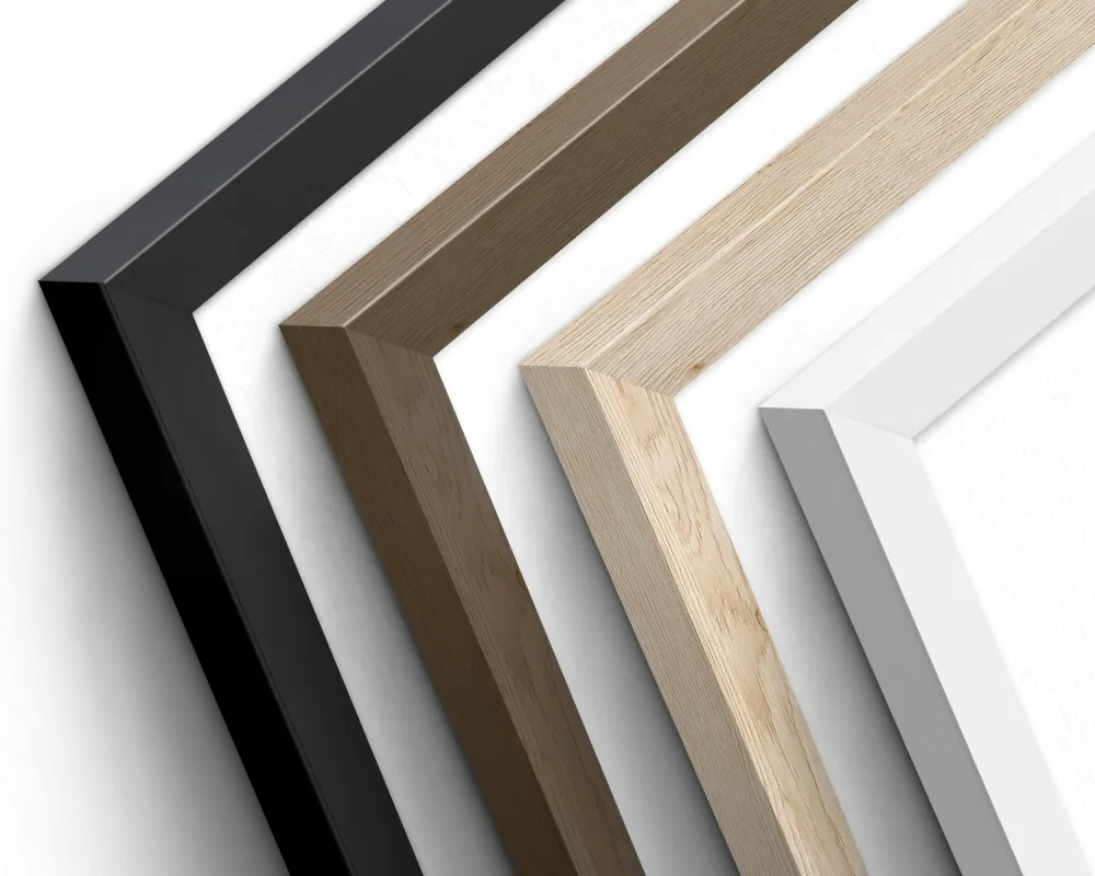 Our frames are crafted from durable, sustainably sourced pine wood with a sleek, modern profile. Choose from four versatile colours to suit any space.